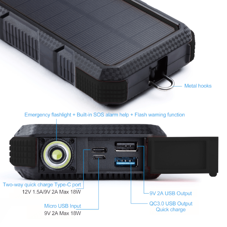 PD 18W Solarstrom-Ladegerät 30000mAh mit Kompass